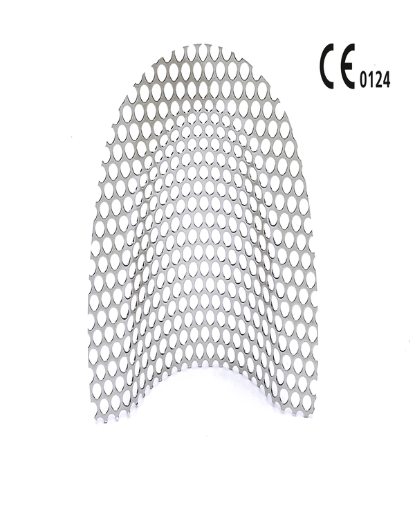 Treillis de renfort avec une grande résistance mécanique pour les prothèses totales supérieures ou subtotales. Même avec des failles ou des déchirures dans la résine, les parties de la prothèse restent positionnées.ƒƒ Disponibles en version dorée ou non dorée.ƒƒ Renforce considérablement les prothèses en résine. Épaisseur: 0,4 mm Dimensions (lar. x lon. x h.) 59 x 54 x 14 mm